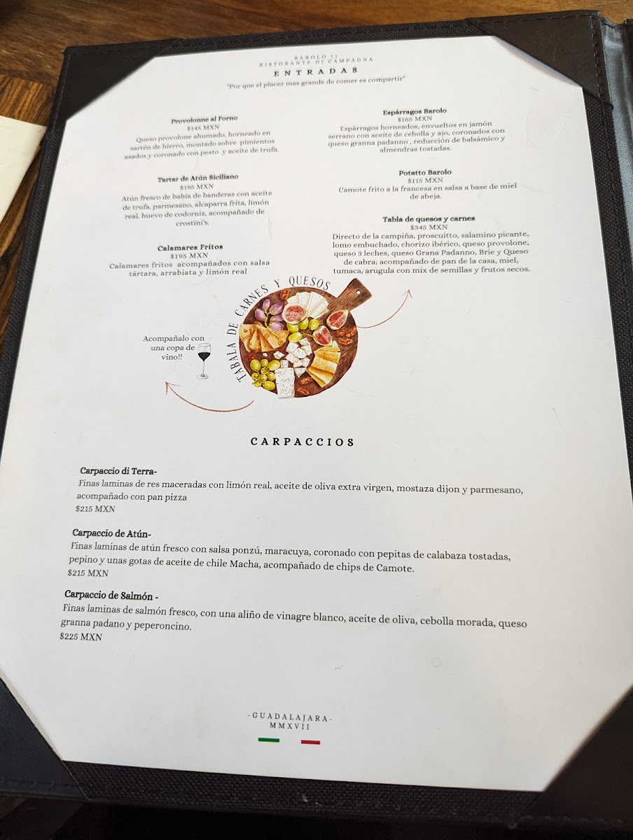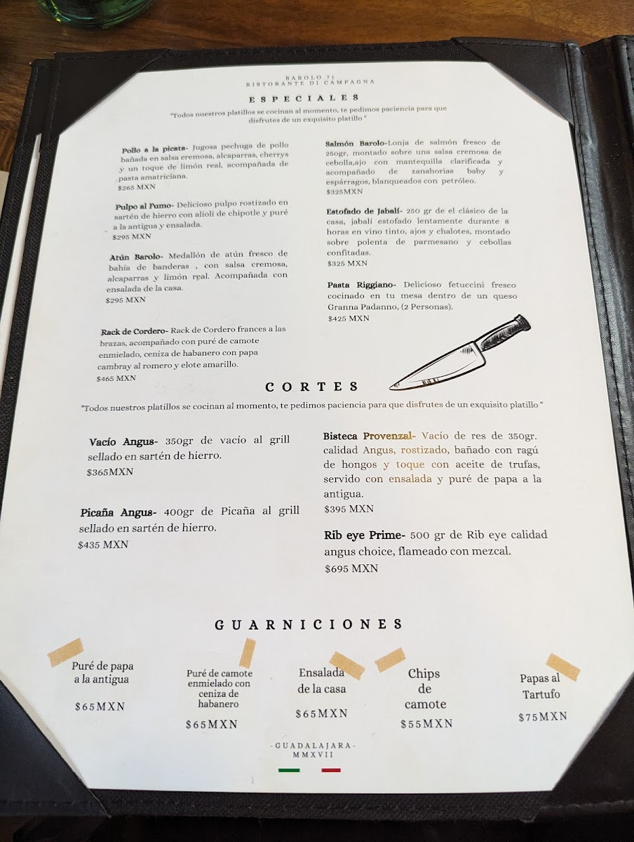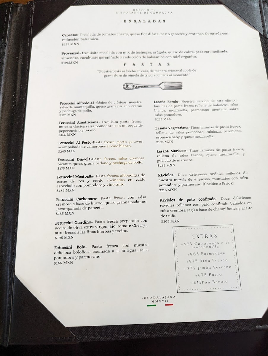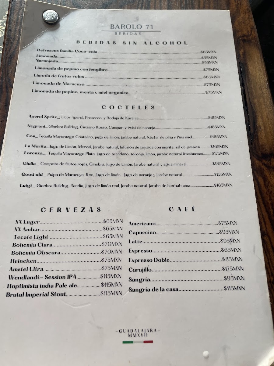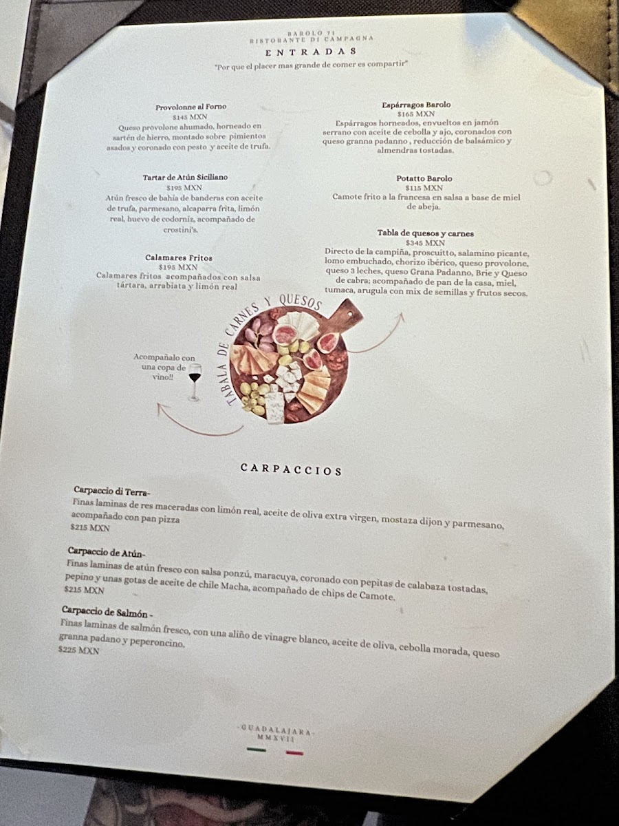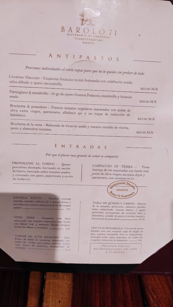 Nestled in the heart of San Pedro Tlaquepaque, Barolo 71 is a culinary treasure that delights with a diverse menu. Guests can indulge in expertly crafted dishes, from mouthwatering Carnes Parrilladas and fresh, savory Restaurante de Mariscos to vibrant vegetarian options. Signature dishes like Grilled Octopus and Ravioli Fritti showcase the kitchen's commitment to quality and taste.